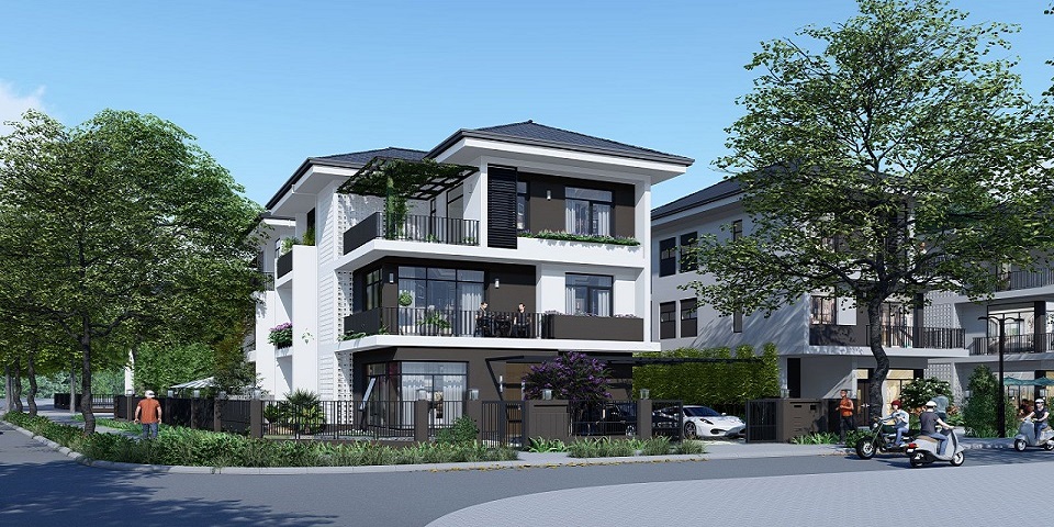 - Các lô biệt thự có diện tích từ 200-250m2, xây 3 tầng 1 tum, mật độ xây dựng 60%